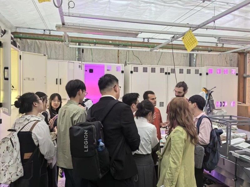 博洛尼亚大学博士生向出访团介绍基于人工气候室的植物水培实验平台