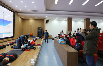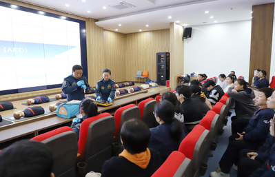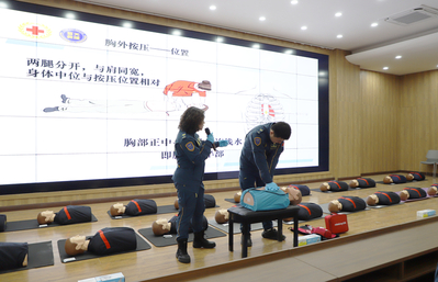 培训以理论讲解与实操演练相结合的形式展开。蓝天救援队专家围绕心肺复苏(CPR)、自动体外除颤仪(AED)的使用、气道异物梗阻处理等关键环节进行了系统讲解,并通过现场演示展示标准操作要点与注意事项。实操环节中,救援专家一对一指导现场师生,手把手纠正动作细节,帮助大家准确掌握“黄金四分钟”内的急救要领。